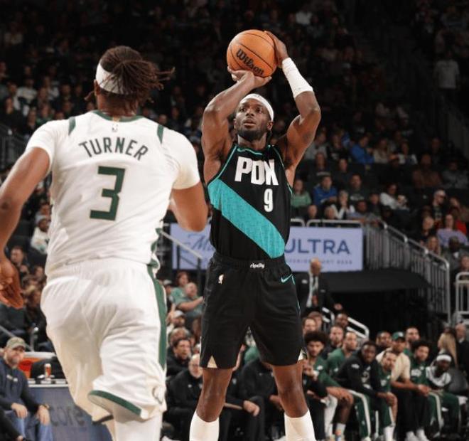 这次迎战雄鹿,整场比赛开下来开拓者可谓是下起了三分雨。