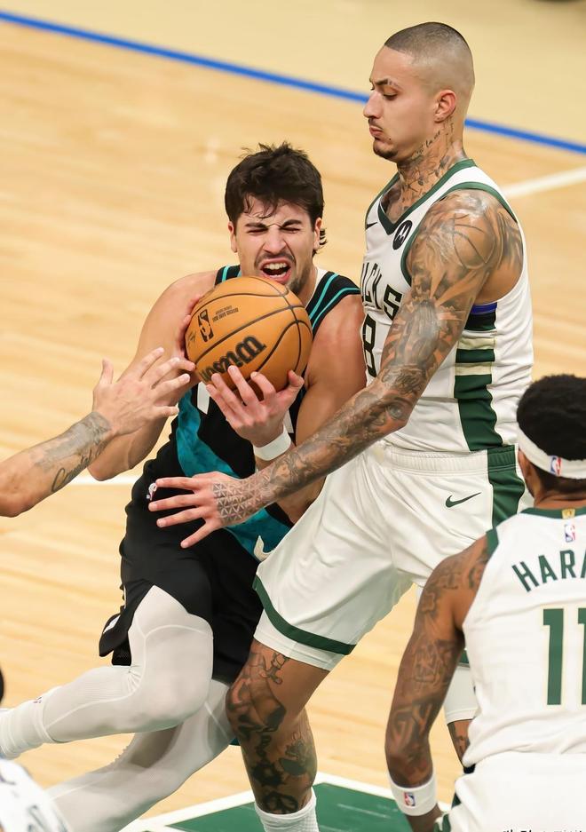 还在进攻端多次得分,给雄鹿队的内线造成了极大的威胁。